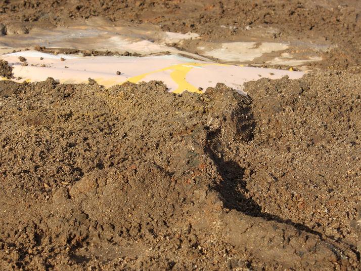 Oxyde et ocre sur sable, quand le sol vibre avec la couleur, land art 2017.
